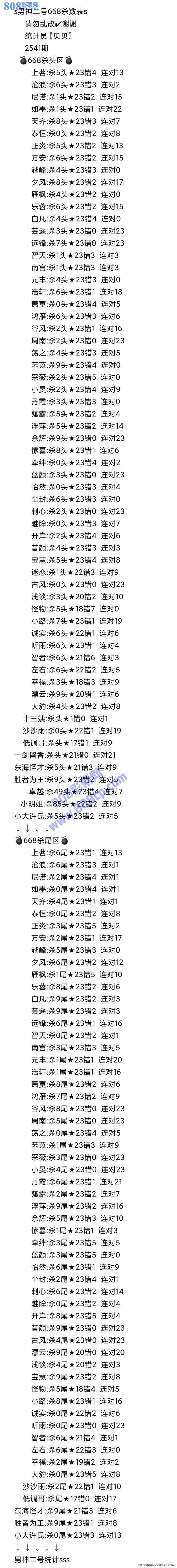2541期:男神二号统计