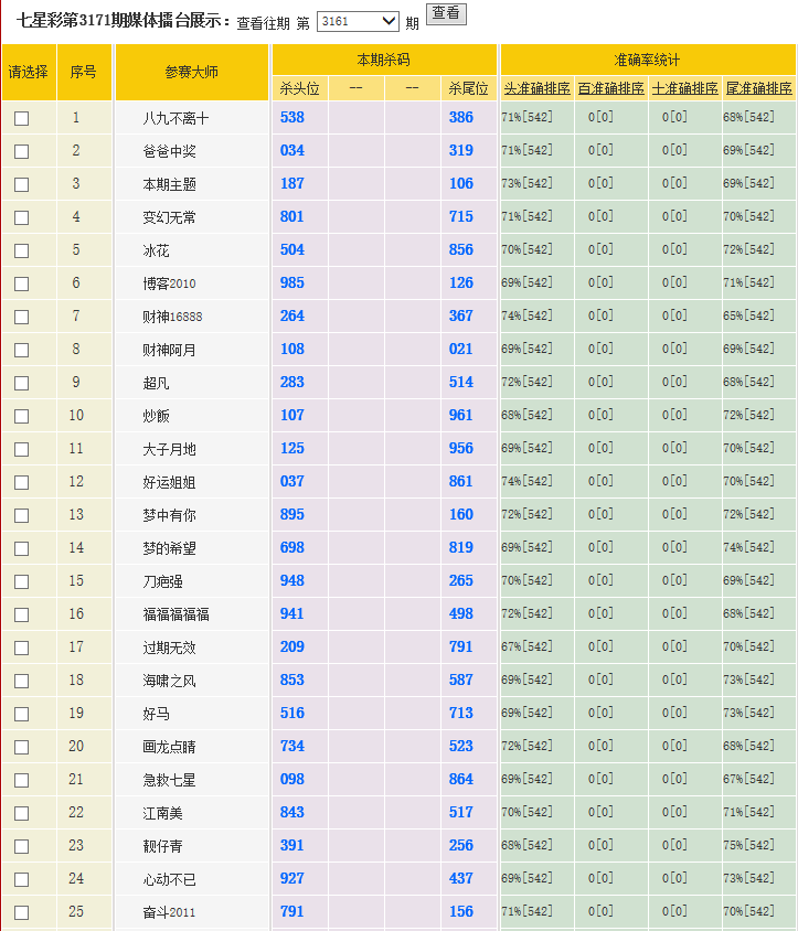 七星彩杀码荣誉榜