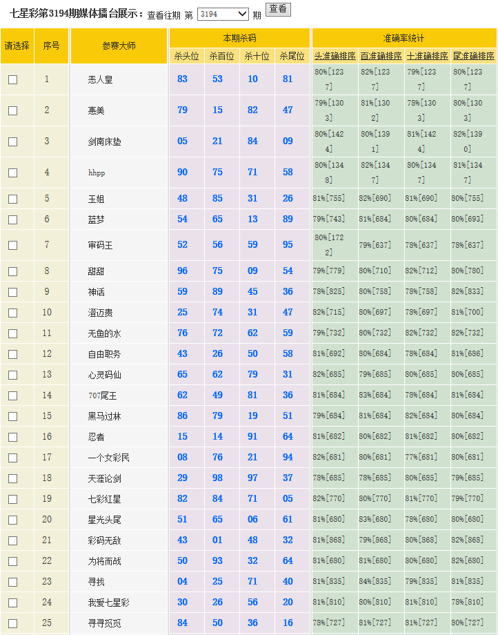 七星彩杀码荣誉榜