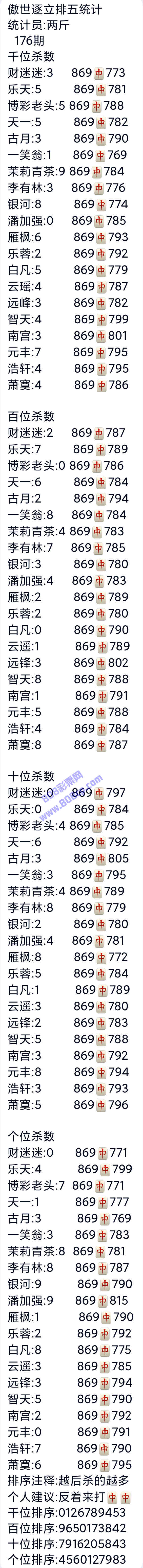 21176期:傲世逐立统计