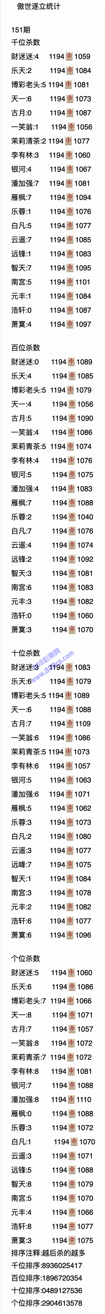 22151期:傲世逐立统计
