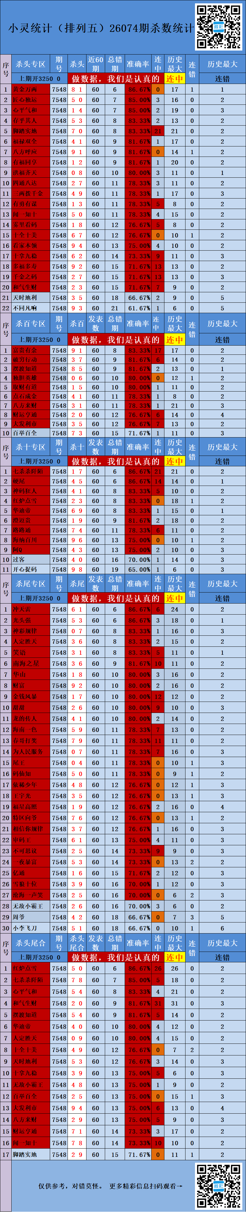 26074期:小灵统计