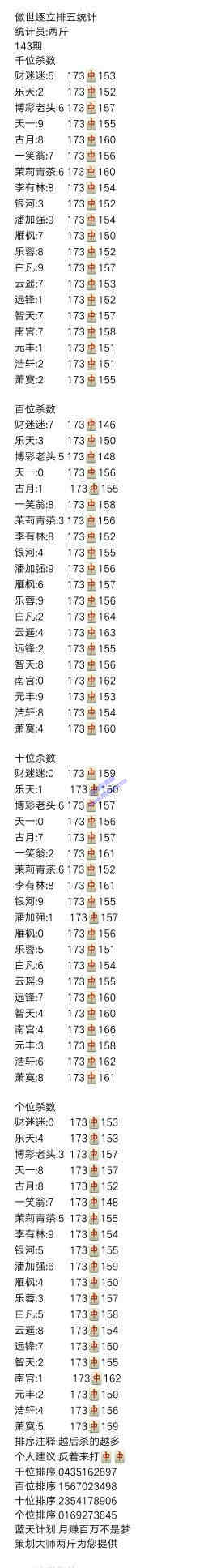 19143期:傲世逐立统计