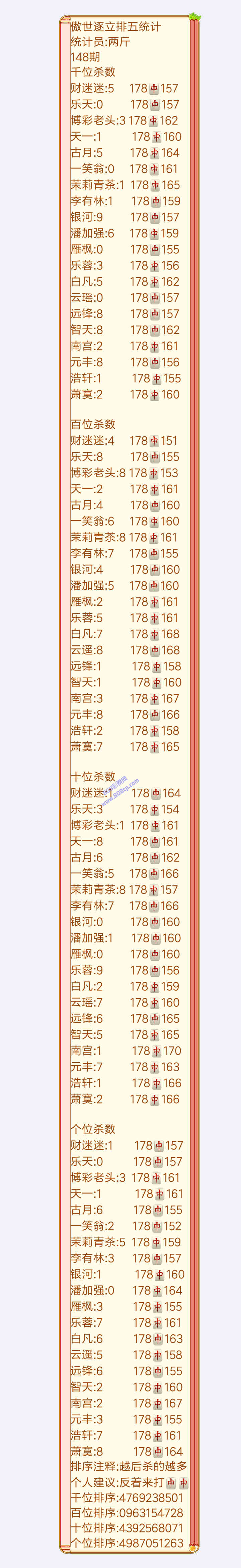 19148期:傲世逐立统计