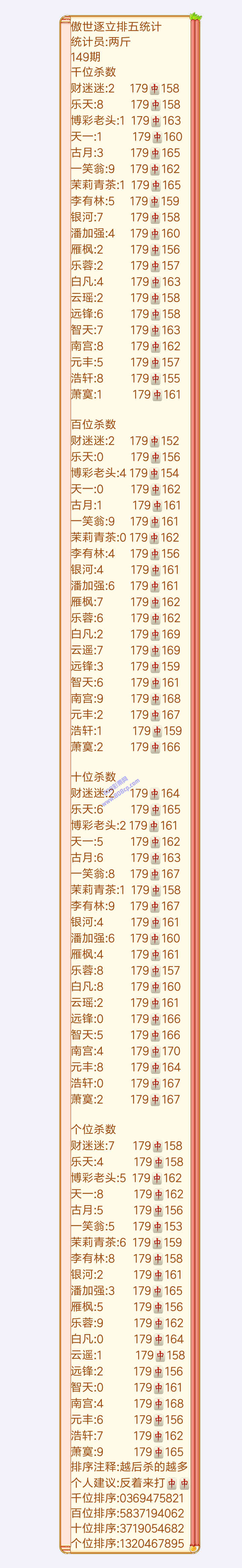19149期:傲世逐立统计