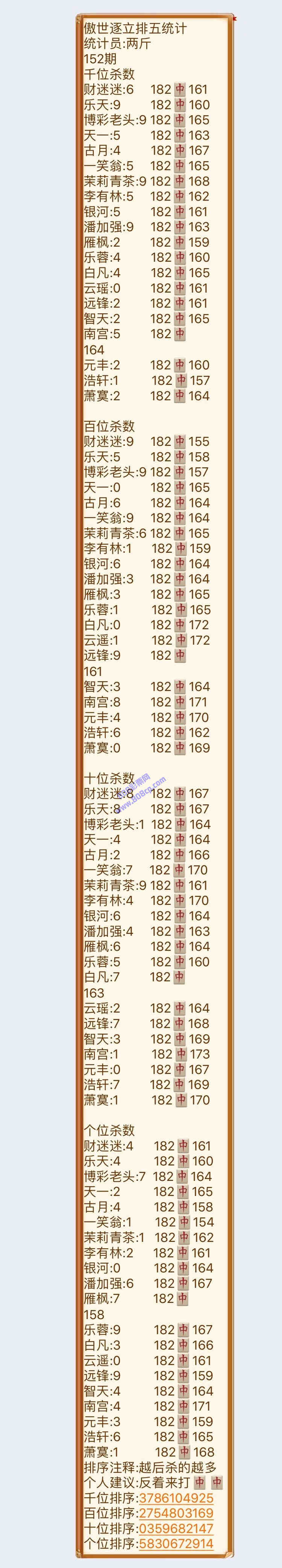 19152期:傲世逐立统计