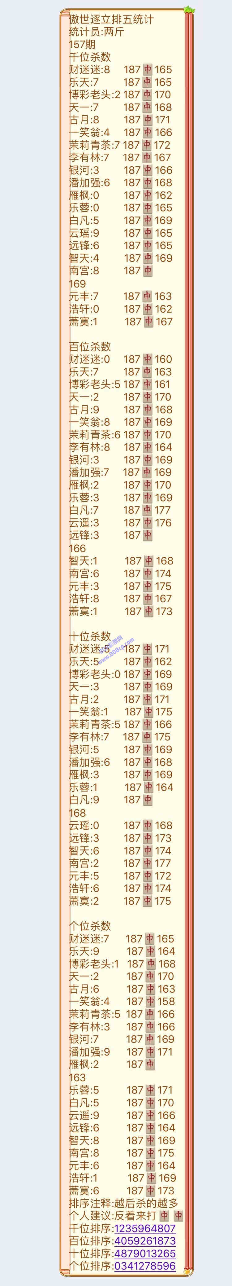 19157期:傲世逐立统计