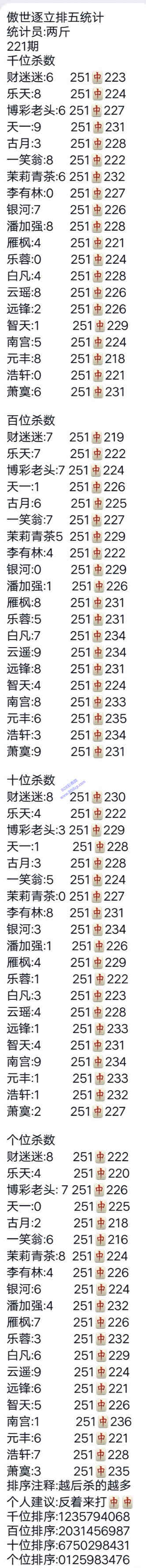 19221期:傲世逐立统计