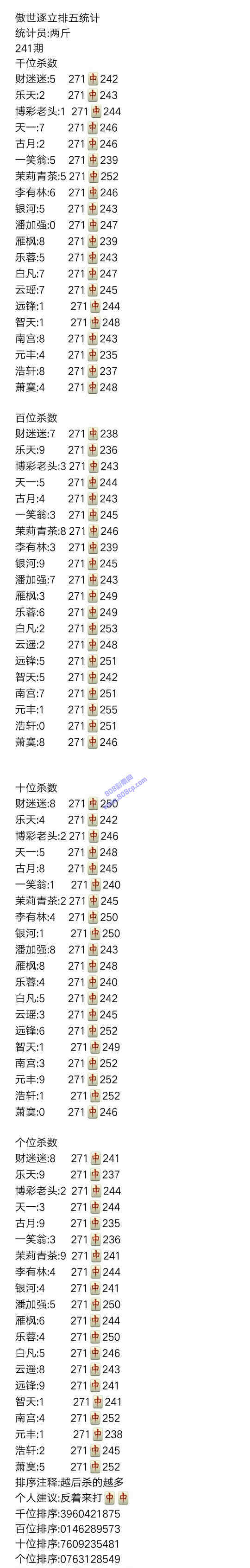 19241期:傲世逐立统计