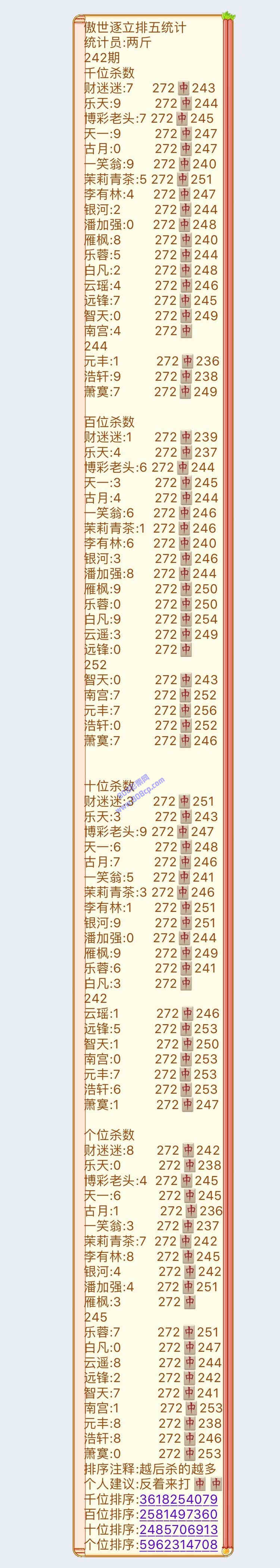 19242期:傲世逐立统计
