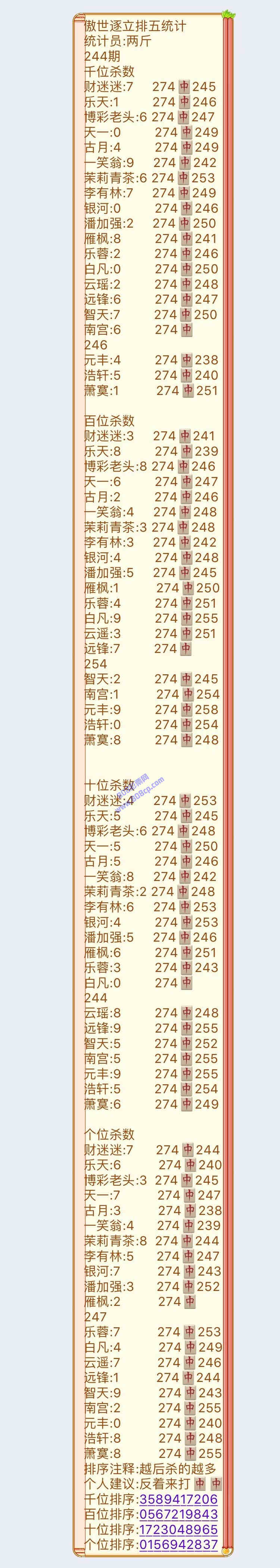 19244期:傲世逐立统计