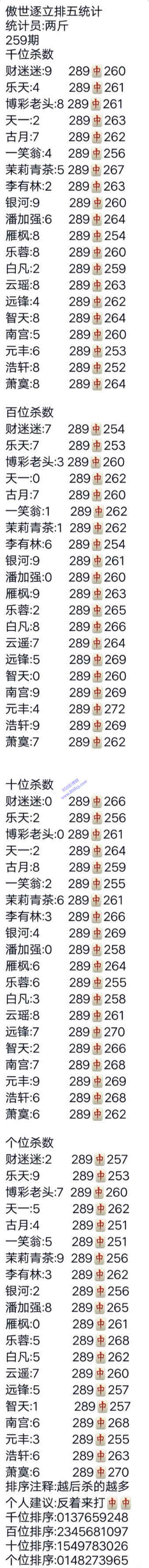 19259期:傲世逐立统计