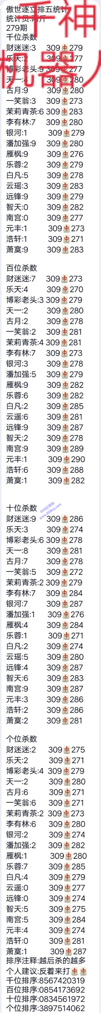 19279期:傲世逐立统计