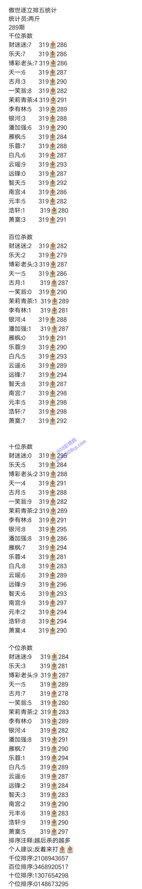19289期:傲世逐立统计