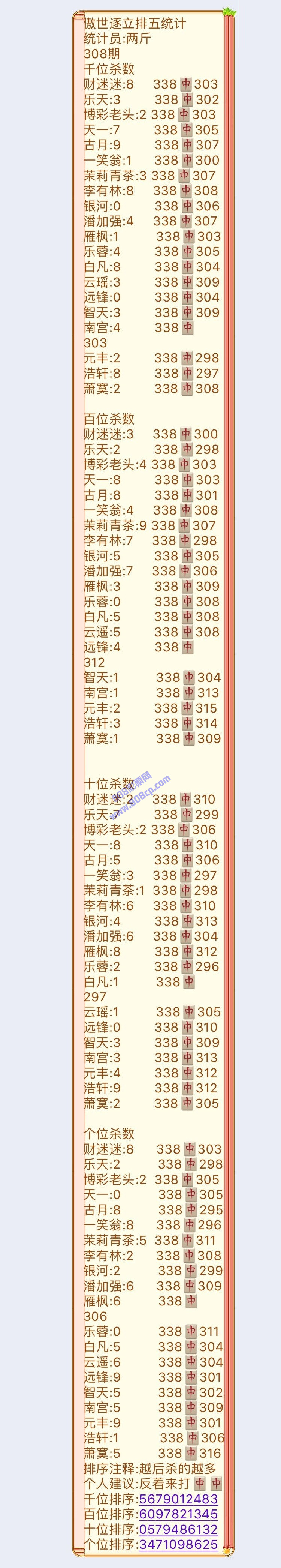 19308期:傲世逐立统计