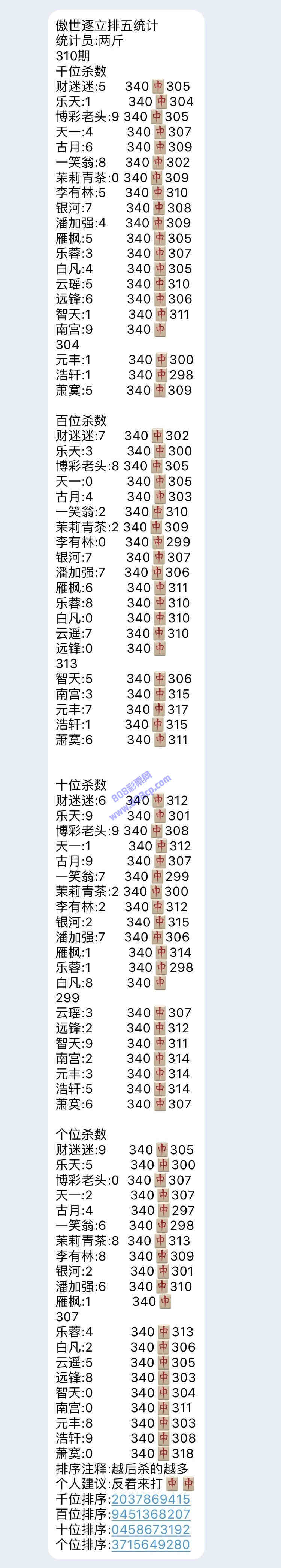 19310期:傲世逐立统计