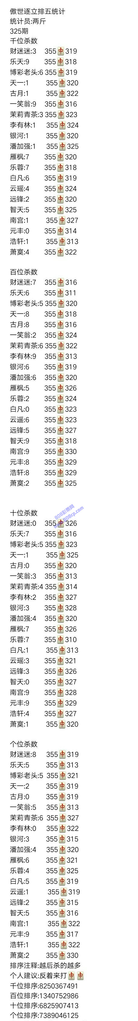19325期:傲世逐立统计