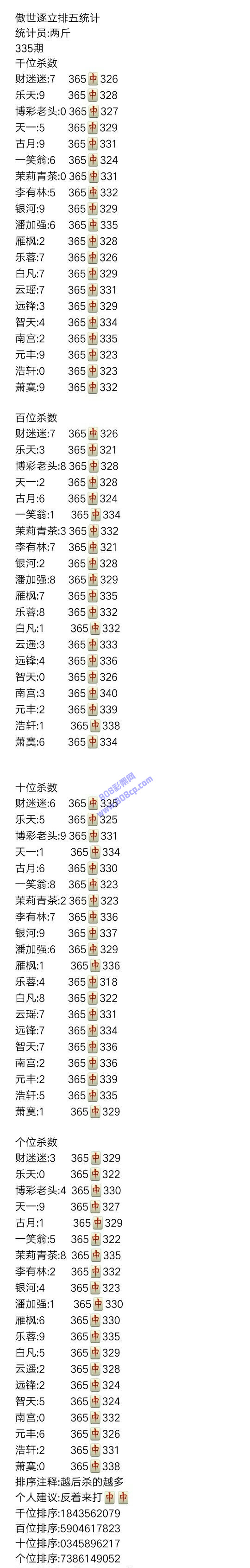 19335期:傲世逐立统计