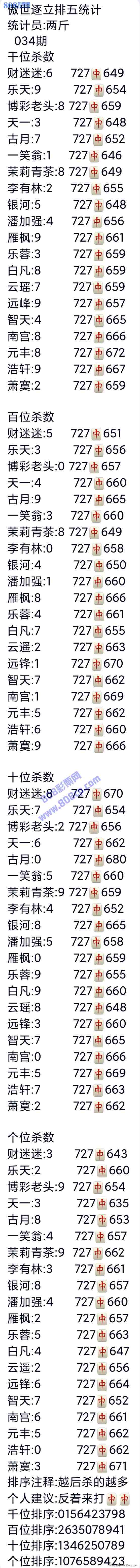 21034期:傲世逐立统计