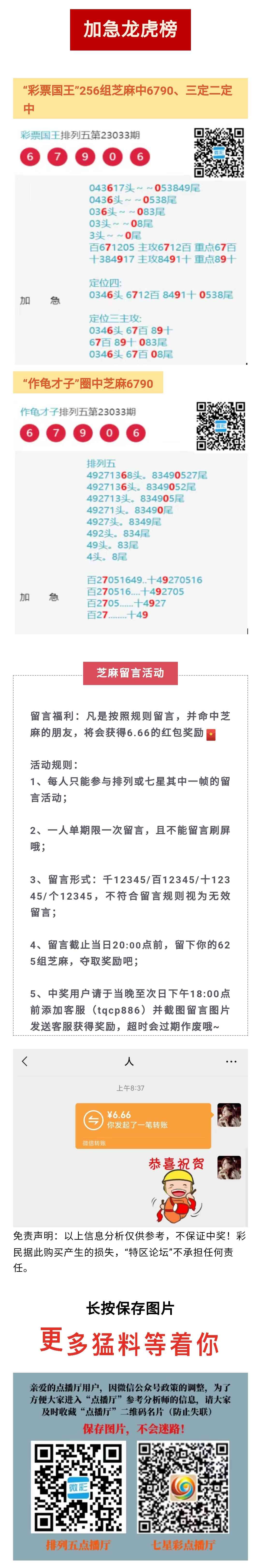 23034期:【特区排列五】“财神到家”芝麻中6790;留言区“人”625组芝麻中6790!