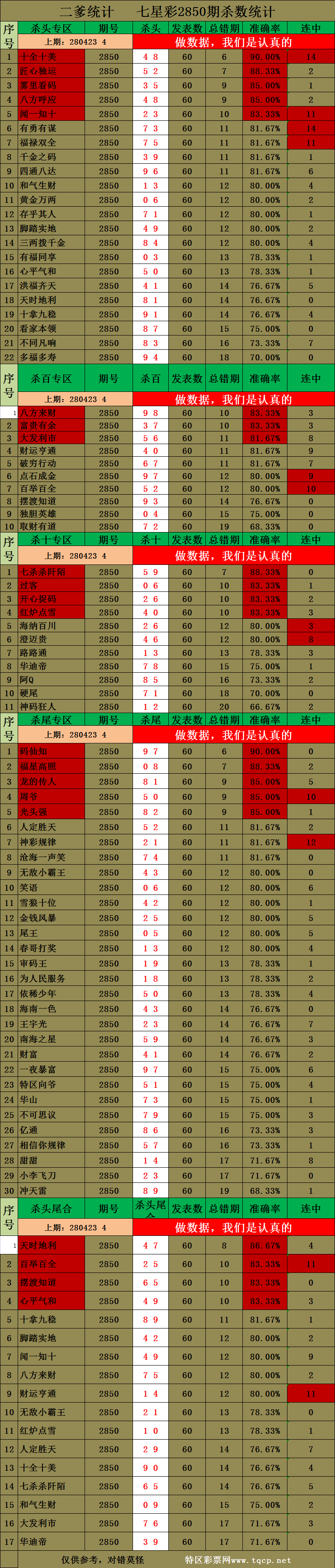 2850期:二爹统计