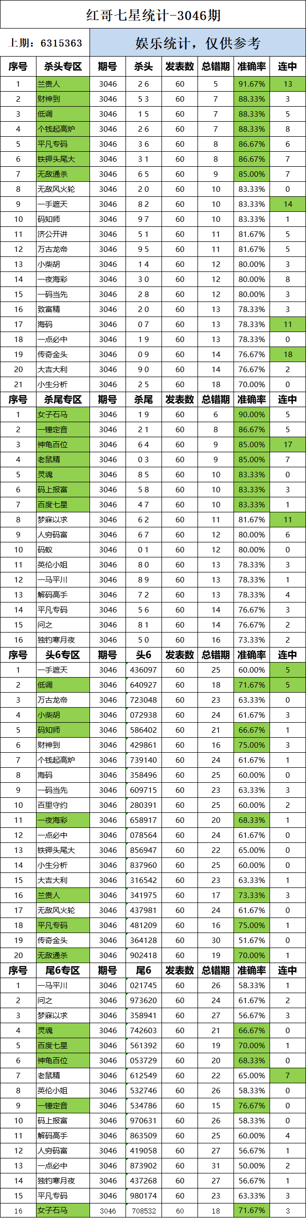 3046期:红哥统计