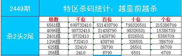 2449期数据:特区杀码统计