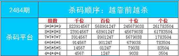2484期数据:特区杀码统计