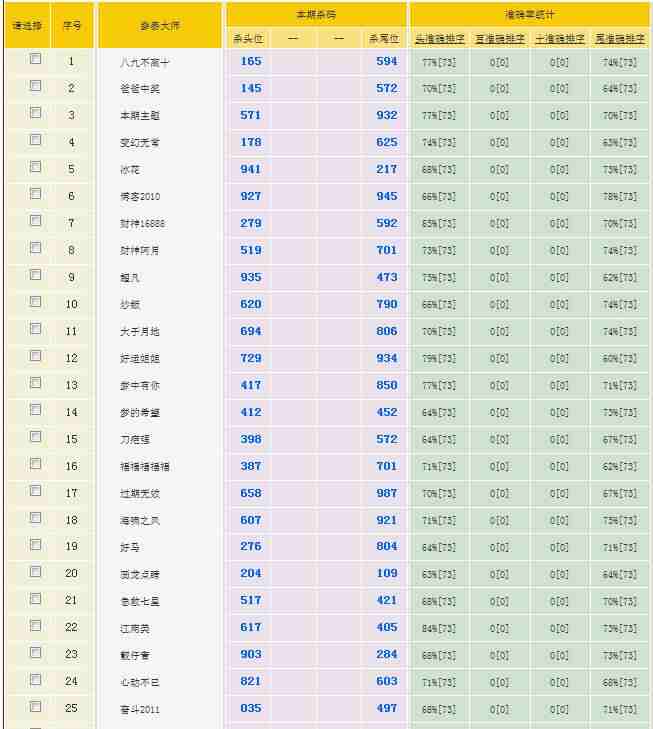 2701期:特区杀三头三尾统计