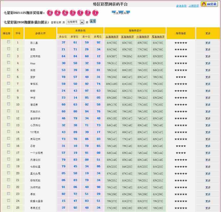 2656期:特区杀二头二尾平台统计