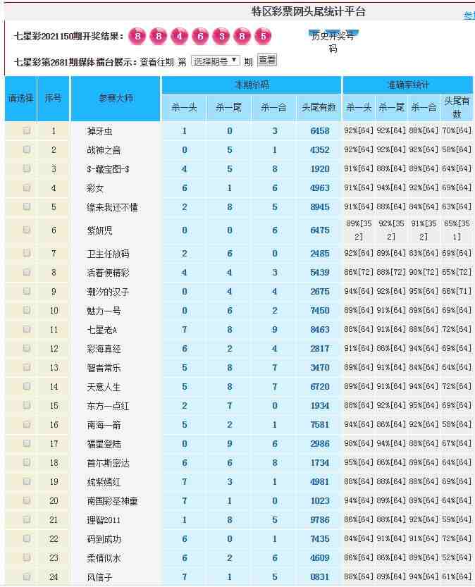 2681期:特区杀一头一尾统计