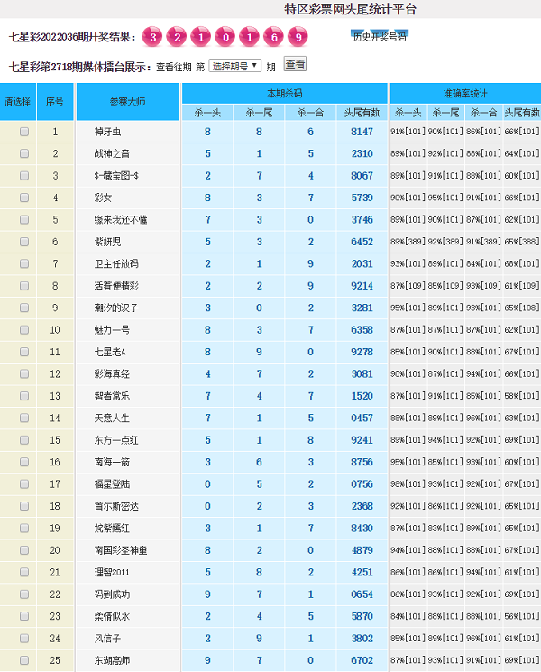 2718期:特区杀一头一尾统计