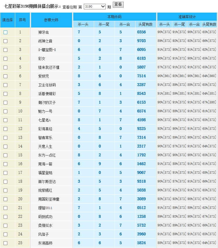 七星彩3190期特区杀一头一尾统计