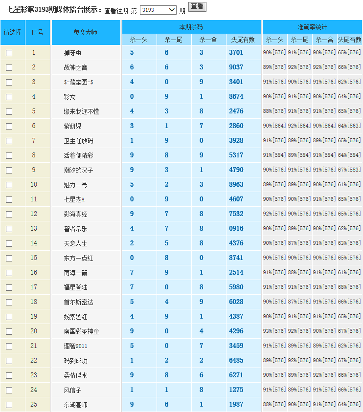七星彩3193期特区杀一头一尾统计
