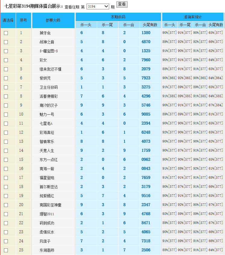 七星彩3194期特区杀一头一尾统计