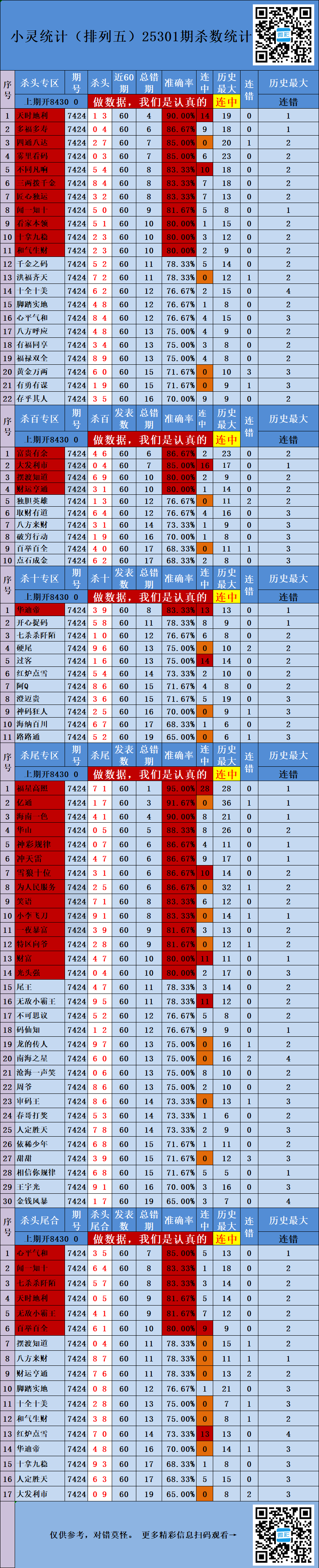 25301期:小灵统计