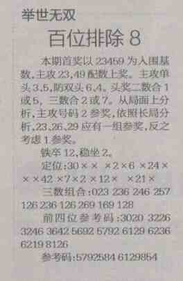 【举世无双】第1470预测信息<特区报>