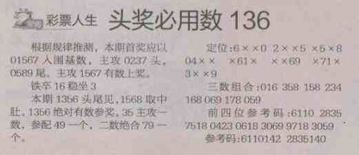 【彩票人生】第1474预测信息<特区报>