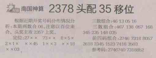 【南国神算】第1474预测信息<特区报>