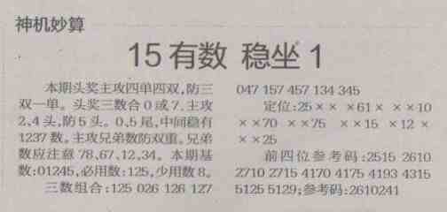 【神机妙算】第1476预测信息<特区报>