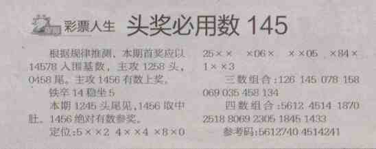 【彩票人生】第1477预测信息<特区报>