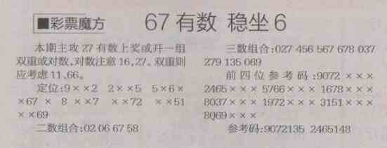 【彩票魔方】第1478预测信息<特区报>