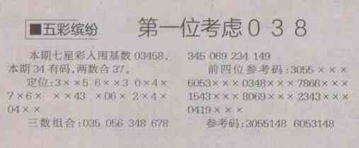 【五彩缤纷】第1478预测信息<特区报>