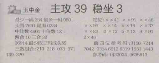 【玉中金】第1478预测信息<特区报>