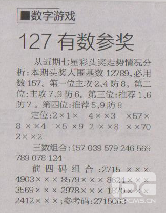 【数字游戏】第1480预测信息<特区报>