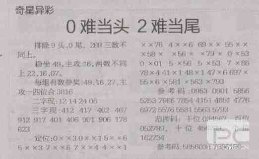【奇星异彩】第1480预测信息<特区报>