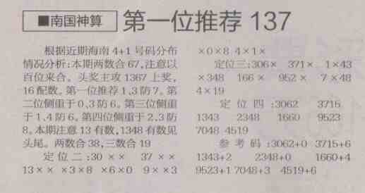 【南国神算】第1481预测信息<特区报>