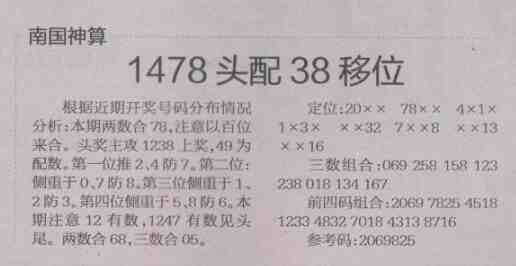 【南国神算】第1483预测信息<特区报>