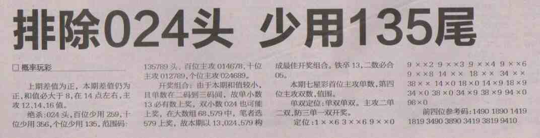 【概率玩彩】第1485预测信息<特区报>