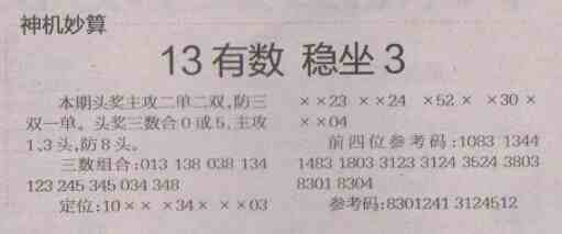 【神机妙算】第1485预测信息<特区报>